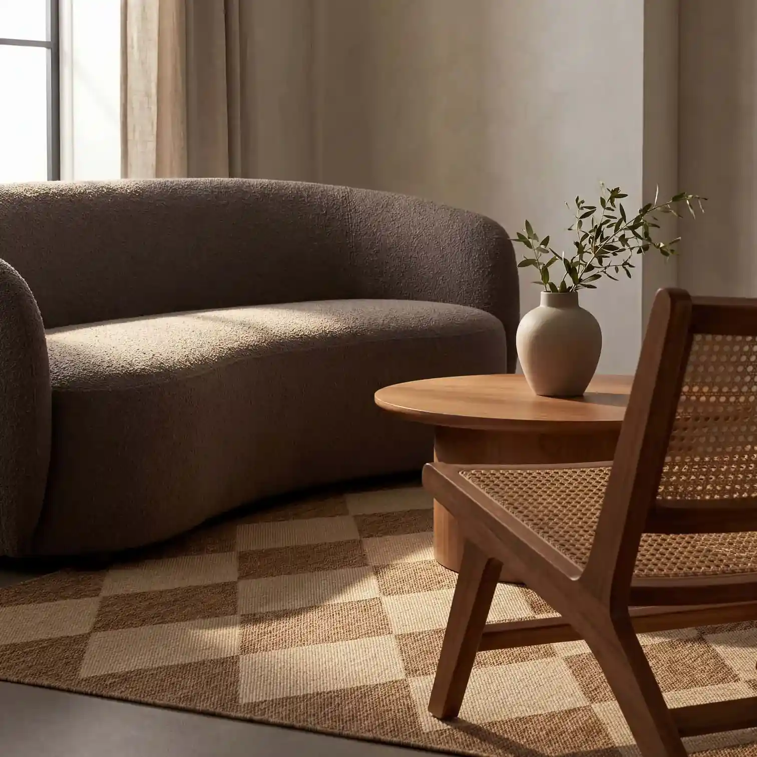 - Classic diamond pattern in warm neutral tones