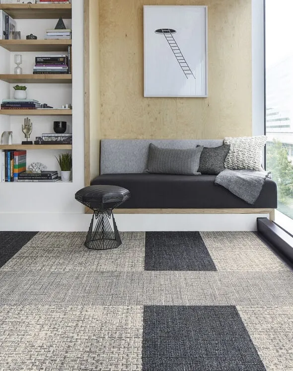 Effortless yet refined, this flat-woven carpet tile adds subtle texture and sophistication to any interior space. Its neutral tones and modern pattern make it a versatile choice for both residential and commercial environments. Each tile features a random, non-repeating pattern, meaning no two pieces look exactly the same. Because the design does not align, installations feel more natural and visually dynamic while also making layout easier and more flexible.