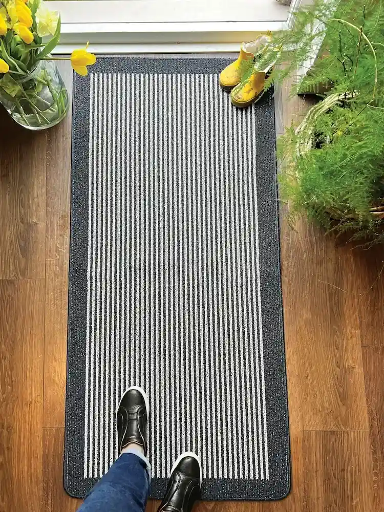 This contemporary runner features a clean, striped pattern that effortlessly brings a sophisticated and organized feel to your home’s entryways. Crafted from 100% polypropylene, its durable synthetic fibers are engineered to withstand heavy daily use while remaining incredibly easy to clean and maintain. The sleek, low-profile design and neutral charcoal tones make it an ideal choice for modern hallways, kitchens, or utility rooms where both style and functionality are essential.
