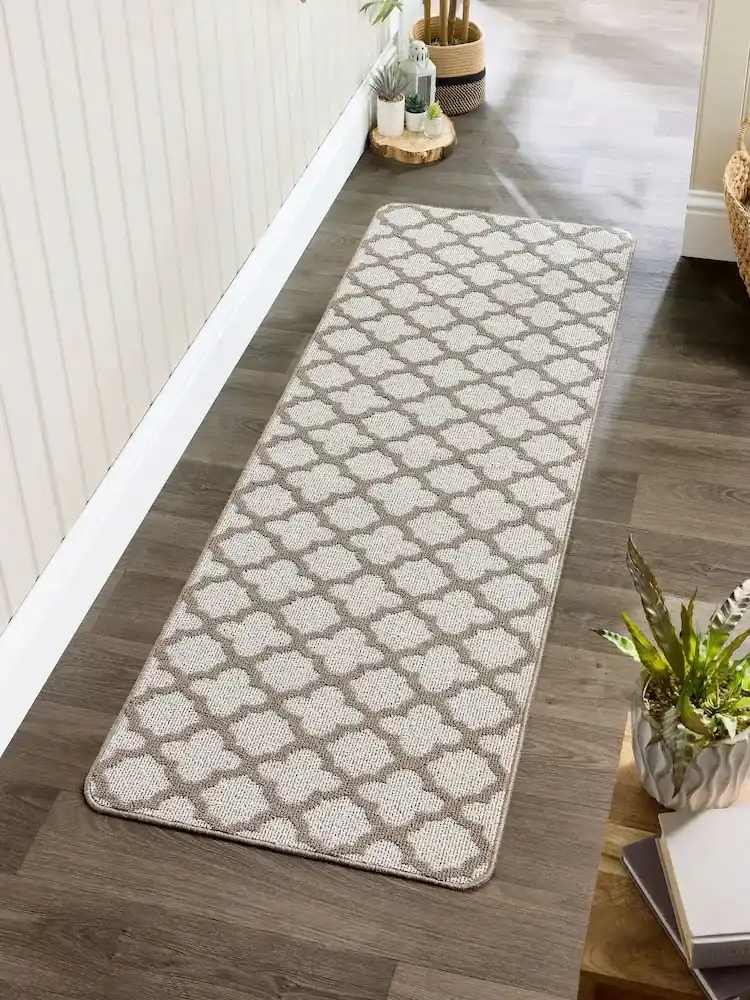Our Moroccan Tile runner is a practical and stylish solution designed to protect your floors in high-traffic areas like kitchens, doorways, and utility rooms. This ultra-absorbent mat features a sophisticated geometric pattern and a non-slip backing, providing both safety and a touch of modern comfort to your home. British-made and engineered with stain-resistant technology, it offers a durable surface that is easy to maintain through regular machine washing, ensuring your space remains clean and inviting.